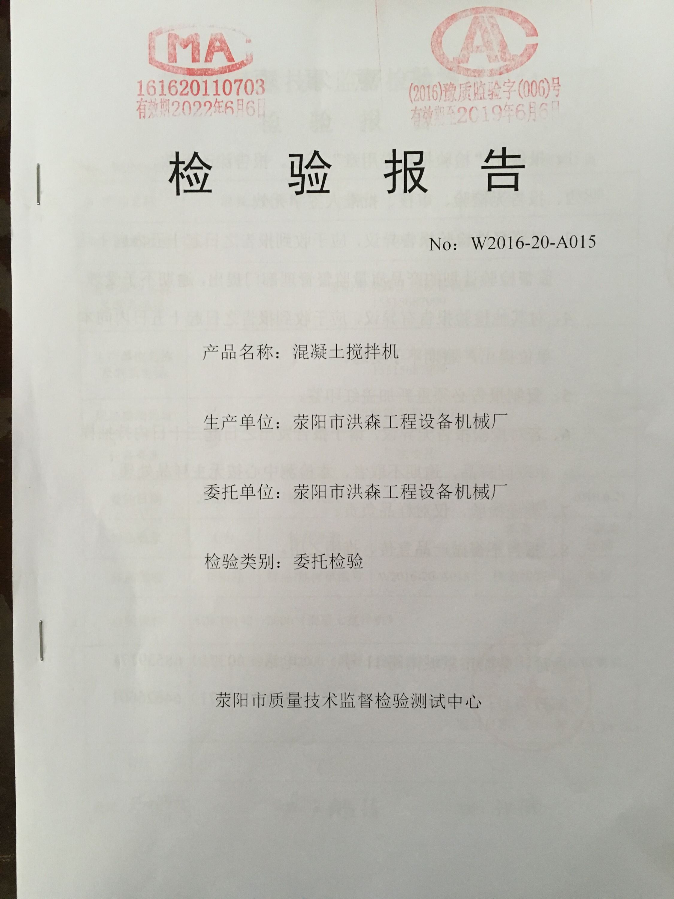 滎陽市質(zhì)量技術(shù)監(jiān)督檢驗(yàn)測(cè)試中心,通過對(duì)公司產(chǎn)品抽檢,認(rèn)定滎陽市洪森工程設(shè)備機(jī)械廠所生產(chǎn)混凝土攪拌站、混凝土攪拌機(jī)、混凝土配料機(jī)以及相關(guān)設(shè)備質(zhì)量達(dá)標(biāo)!文件如下: ![]() 上一條:混凝土攪拌站的特點(diǎn) 下一條:混凝土攪拌站工作中要注意的問題 |
